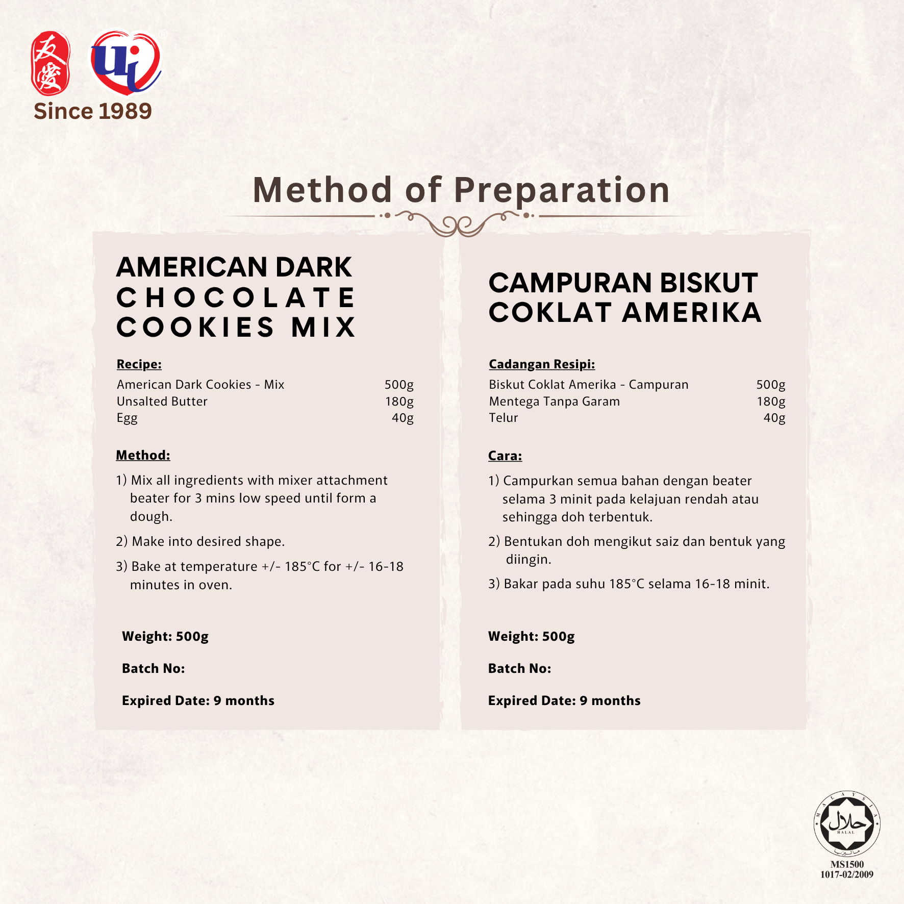 Baking cookies has never been easier! Try our American Dark Chocolate Cookies Mix and you’ll have delicious, crumbly cookies when baked to perfection!