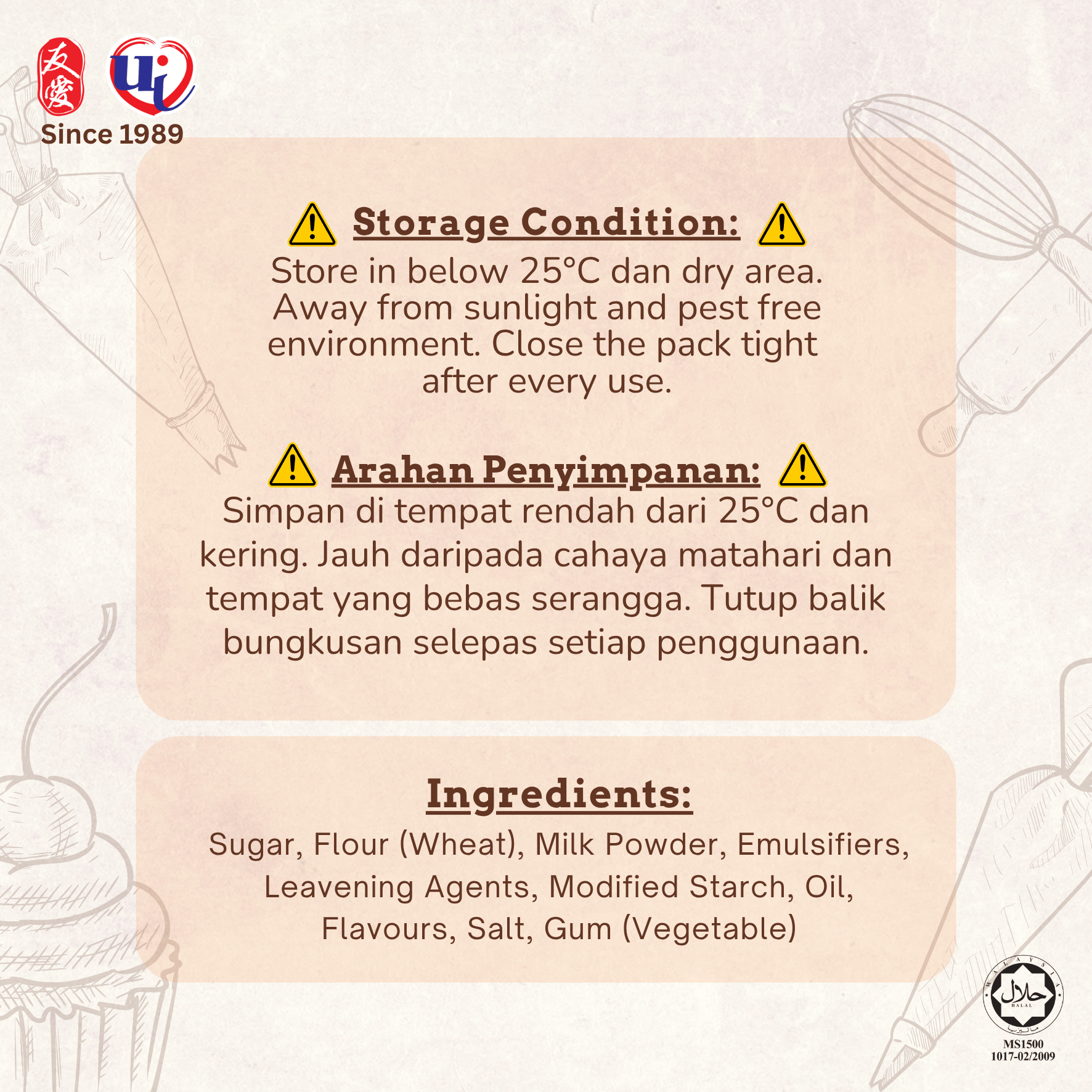 Baking is now a piece of cake with our Moist Cake Mix! Try this premix and you’ll find yourself with a light, sweet, and moist vanilla moist cake – perfect for teatime!